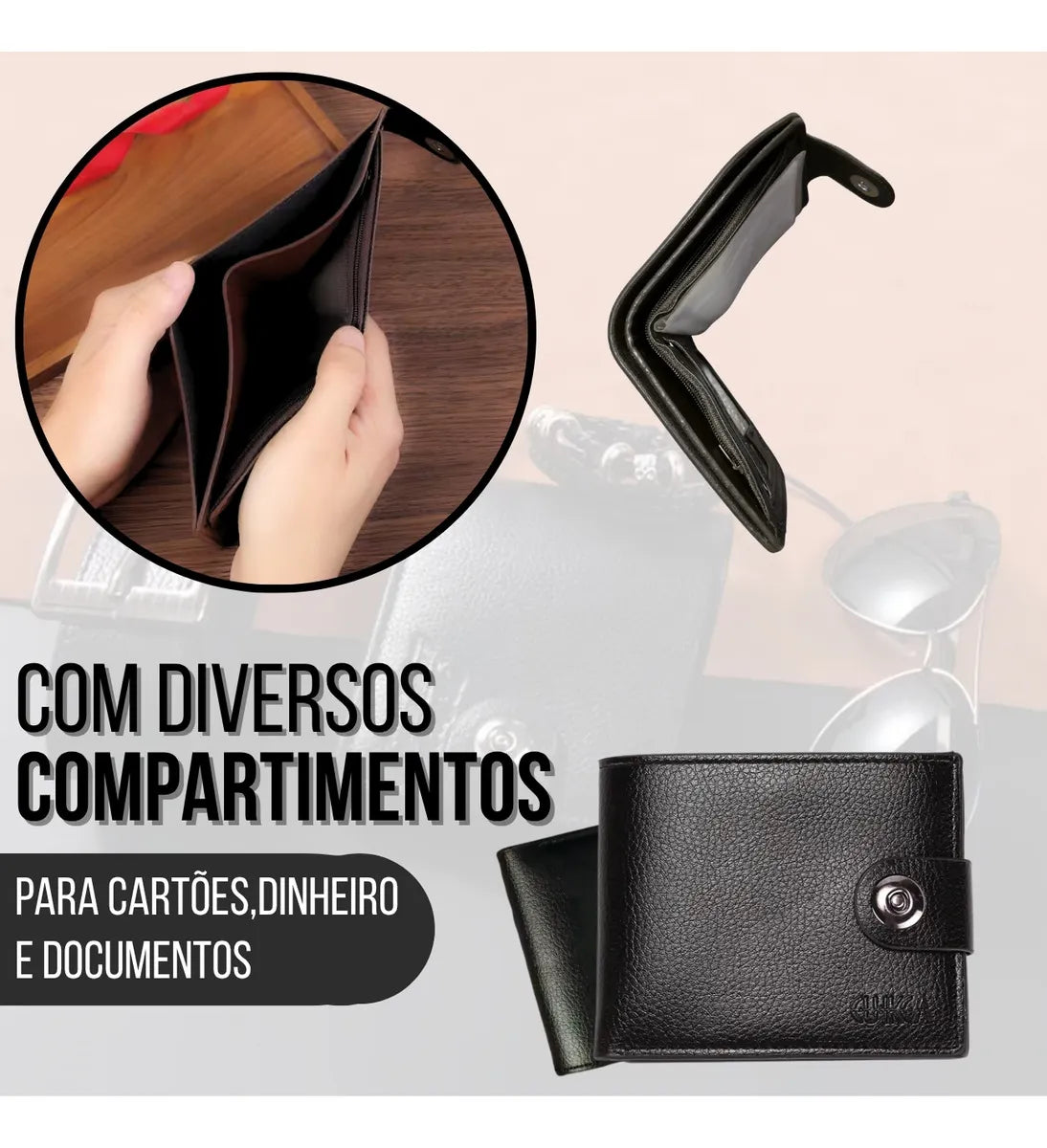 Carteira Masculina Couro Legítimo com Fecho | Porta Cartões, CNH e Dinheiro | Modelo Premium Completo