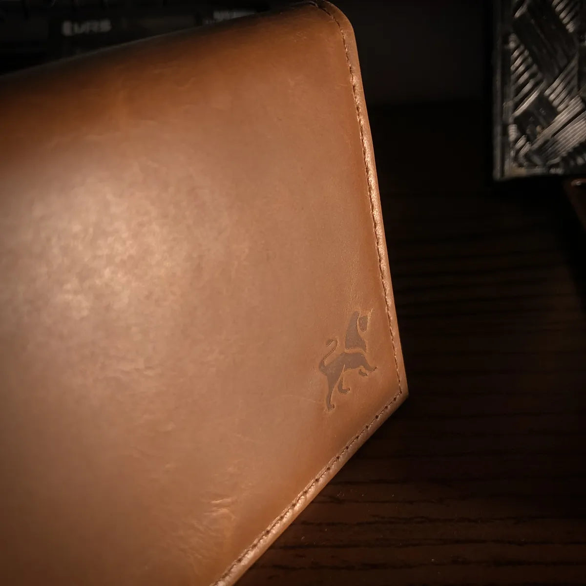 O pequeno leão em baixo-relevo dá um toque exclusivo ao produto, deixando a carteira ainda mais sofisticada e com personalidade.