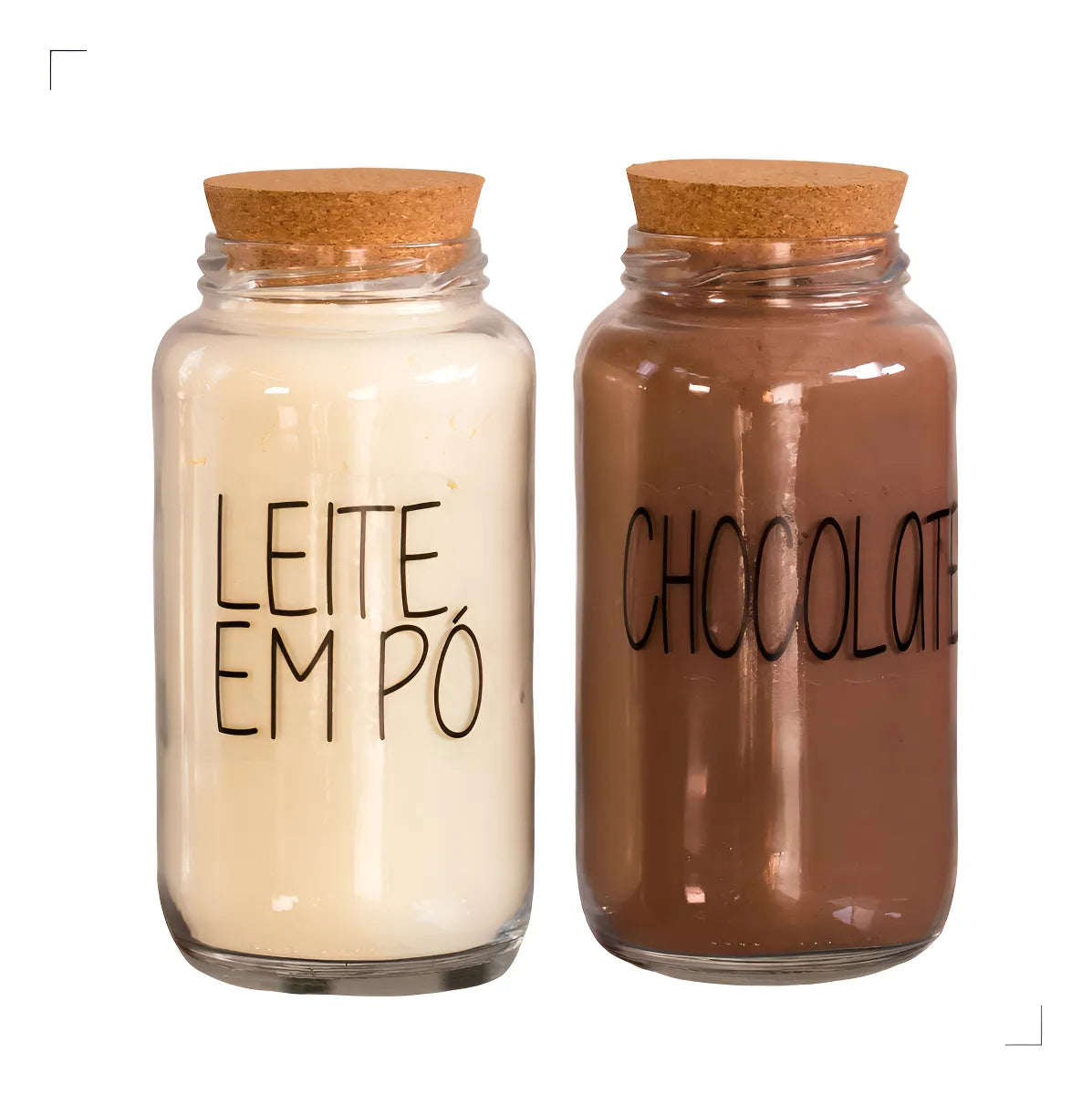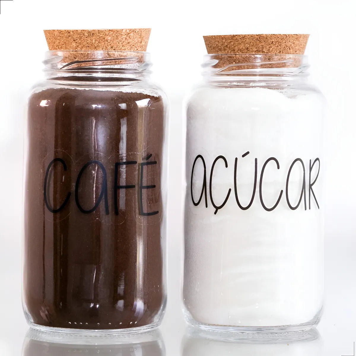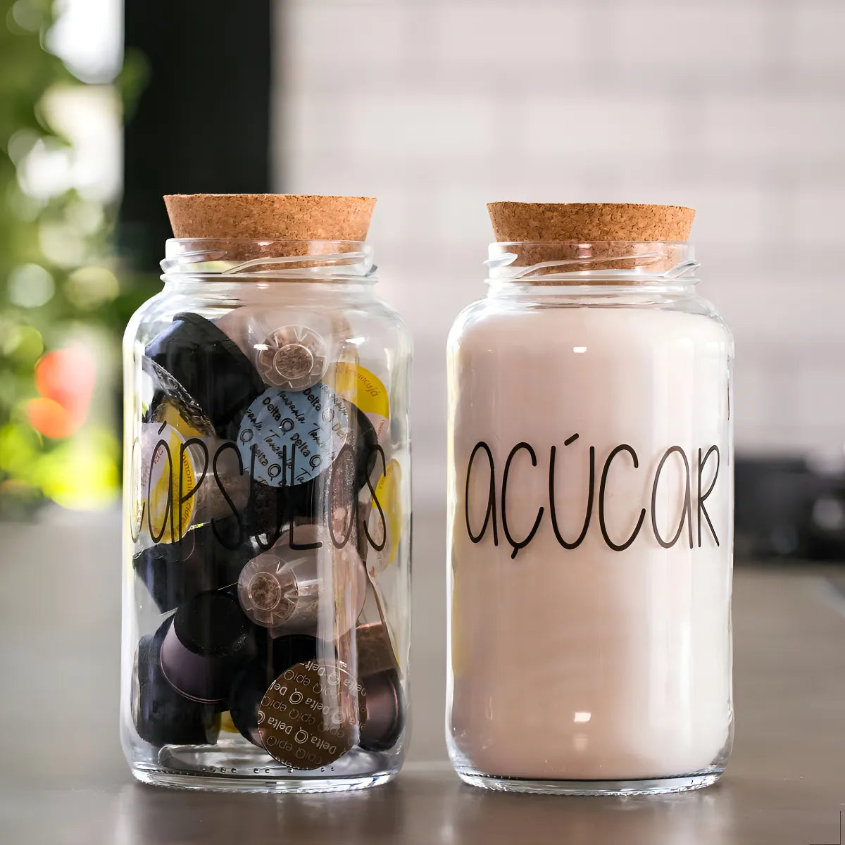 Kit 2 Potes de Vidro 810ml com Tampa de Rolha Estilo Cantinho do Café